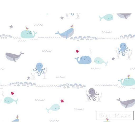 AS CREATION Little Love 38130-1 kék bálná-s tapéta
