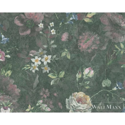 AS CREATION Natural Living 38636-2 zöld virág mintás vidéki tapéta