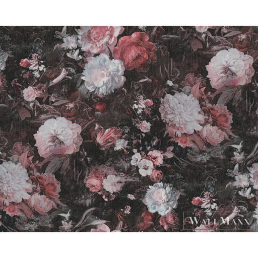 A minta rózsaszín, piros, narancssárga és fehér színű virágokból áll, amelyek sötét háttérben pompáznak. A virágok rózsák, peóniák és más fajták. A virágok kaotikusan és átfedve vannak elrendezve. A minta egy romantikus és vidám stílust kölcsönöz a falnak, amelyet sokféleképpen kombinálhatunk más színekkel és tárgyakkal. Például, a virágos minta jól illik egy rózsaszín vagy fehér kanapéhoz, egy arany asztalhoz, vagy egy csipkés képhez. A virágos minta egy olyan minta, amely szépséget és életet visz a szobába. Ezek a virágok mondernek, mindig frissek és örökzöldek