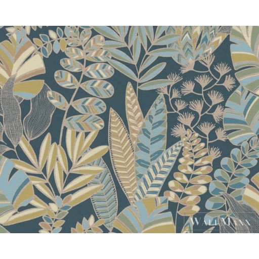 AS CREATION Antigua 39095-5 kék levél mintás grafikus tapéta