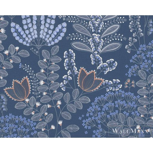 AS CREATION Famous Garden 39349-4 kék levél mintás grafikus tapéta