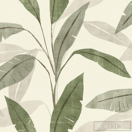 407525 Rasch tapéta szürke-zöld levélmotívum