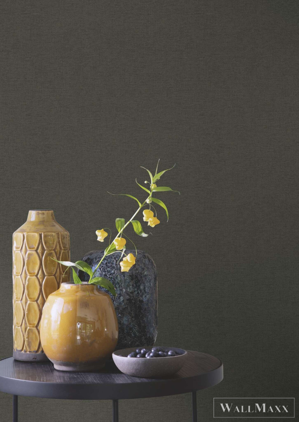 Tapéta sötét fekete színben, nyugodt felülettel és textiljelleggel