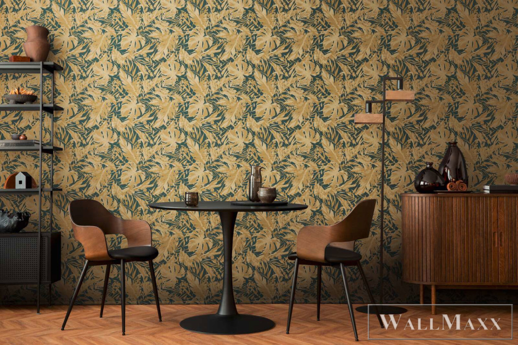 AS CREATION COSMOLiving 79063-6 zöld-fényes leveles klasszikus tapéta
