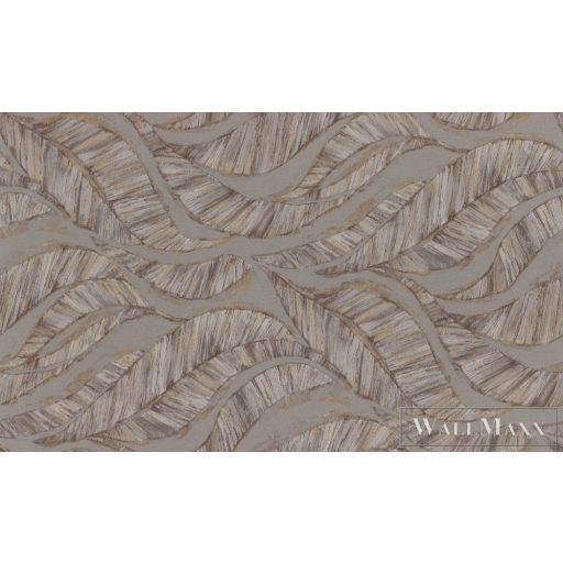 Mesés levélmotívumok most már a falakon is burjánzhatnak. Ez a sok stílusérzékkel rendelkező mintás tapéta kifinomult lombozatot mutat élénk struktúrával, meleg barna tónusokkal és fényes arany díszítéssel. A világosbarnás-szürke háttéren finom textilszerkezetű levelek önmagukban jelennek meg, és remek kontrasztot alkotnak a lineáris és könnyű lakáskiegészítőkkel.