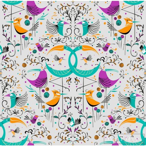 ICH La Tapicera WP182083 ezüst vagány madár mintás grafikai tapéta