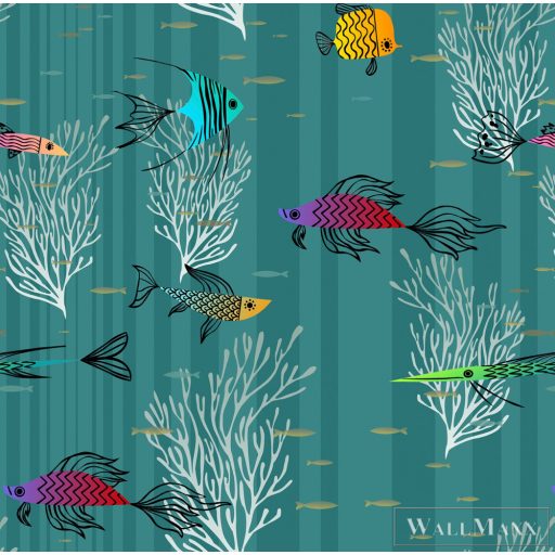 ICH La Tapicera WP182093 kék csíkos halas grafikai tapéta