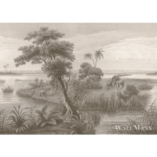 A kis elefántcsalád egy gyönyörű, békés földi helyet választott otthonául. A kilátás erre a csodálatos tóra kis szigetekkel, természetes hidakkal és csodálatos növényvilággal egyszerűen szenzációs. A kétszínű falfestmény jó közérzetet biztosít, és mindig mosolyt csal az arcára.
