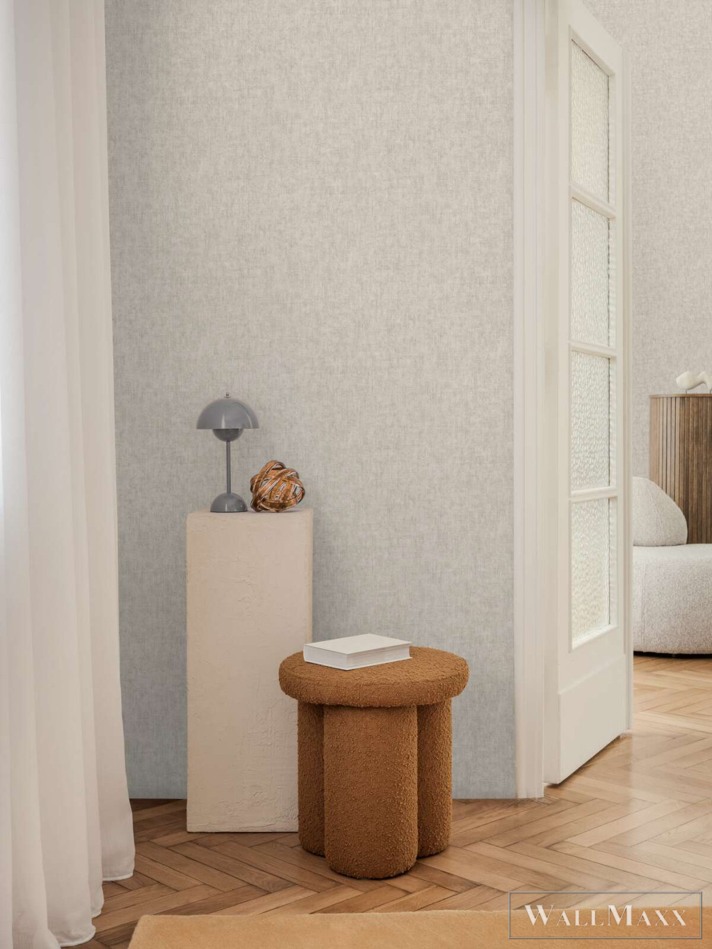 Az anyagok és minták olyan harmóniára törekszenek, amely egyszerre nyugalmat és karaktert visz a falakra.
