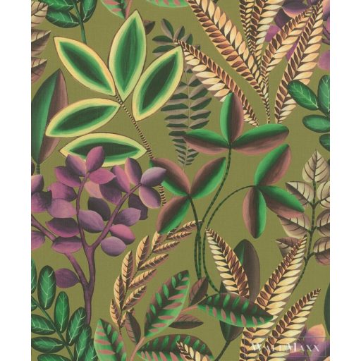 Ezzel a tapétával burkolt szobában Alice Csodaországban érezné magát. A háttérben egy ötletes növényvilág jelenik meg, elegáns szövetszerű textúrával. A színes levelek a zöld, a türkizkék, az olívazöld és az őszibarack különböző árnyalataiban jelennek meg, és megigézik a tekintetet.