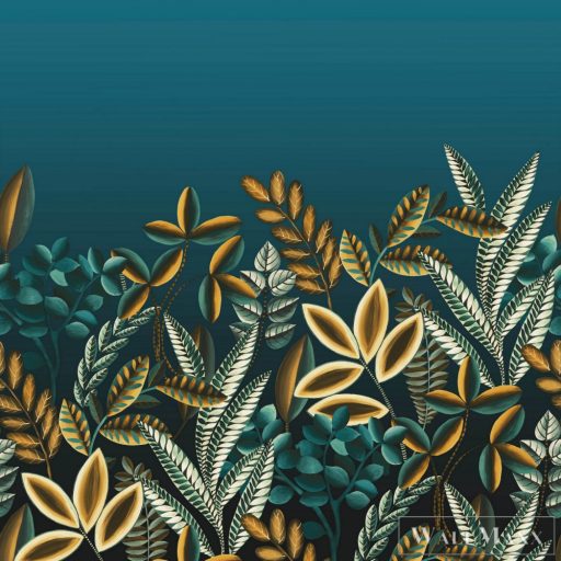 Itt a botanika világa találkozik az álomszerű grafikai tervezéssel. Stilizált levelek sokféle formában és méretben jelennek meg, és minden falat fantáziadús kerti paradicsommá varázsolnak. A kéktől fehér színátmenettel rendelkező háttér előtt a növények gyönyörűen jelennek meg a legkülönfélébb árnyalatokban, a levélzöldtől a türkizkéktől az olívazöldig és az őszibarackig, lenyűgöző kontrasztot teremtve.