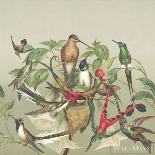 RASCH CurioSity 543537 zöld madár mintás Grafikus digitális panel