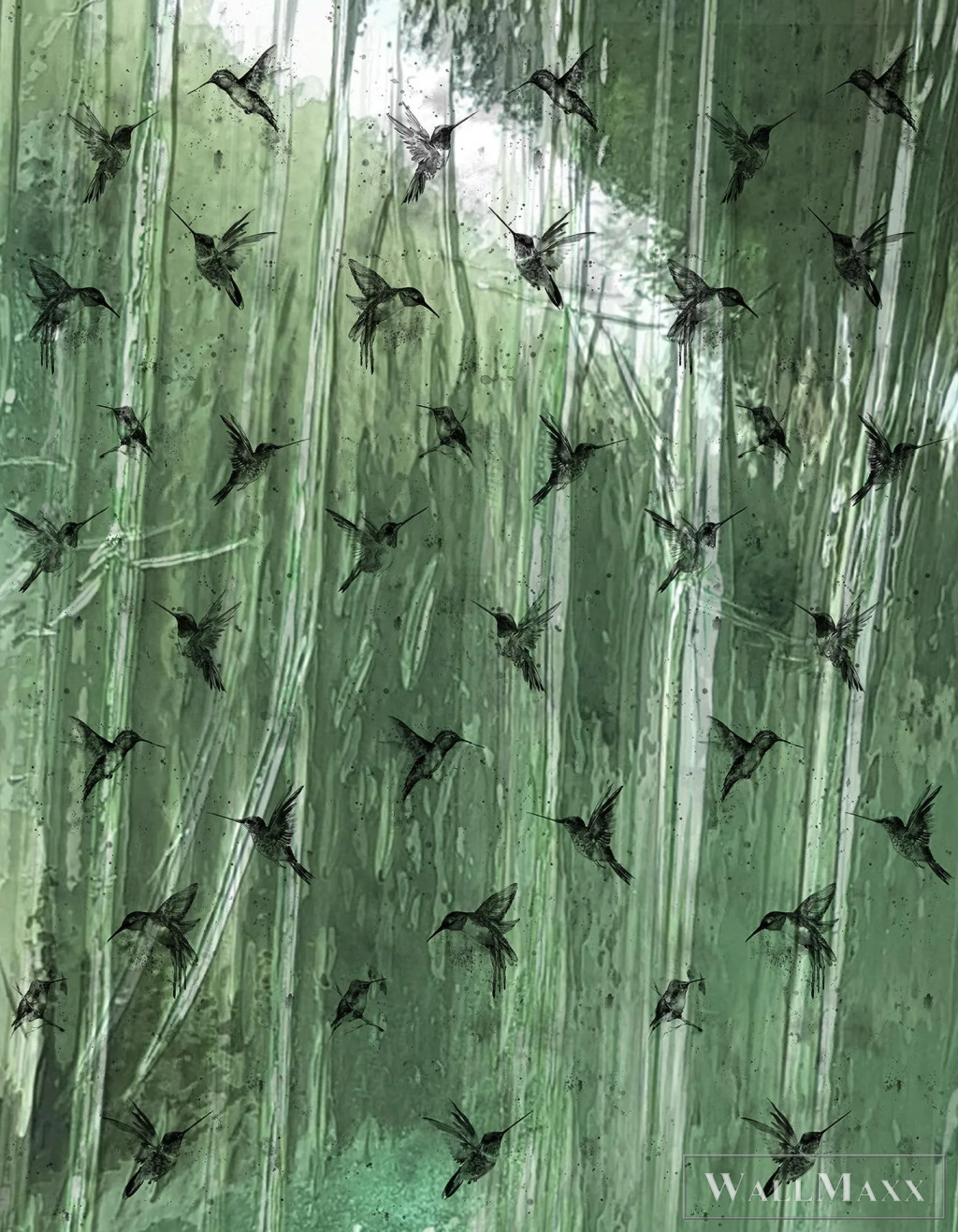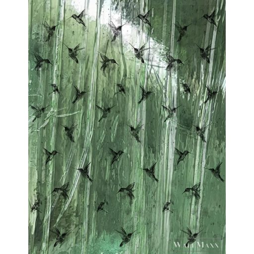 MARBURG Crush Motion 63463 zöld kolibri mintás Gyűrött digitális panel