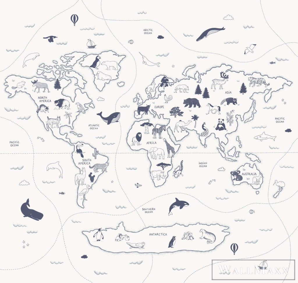 RASCH Roomblush 300066 kék geográf mintás gyermek digitális panel