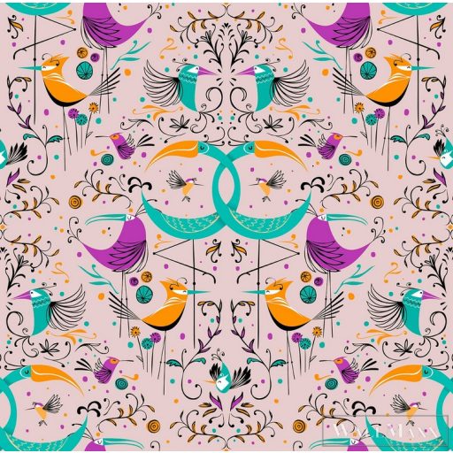ICH La Tapicera WP182082 rózsaszín vagány madár mintás grafikai tapéta