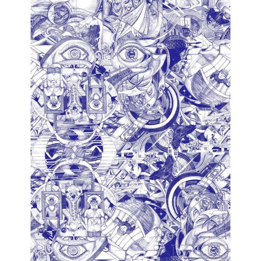ICH La Tapicera WP191111 kék steampunk mintás grafikai tapéta